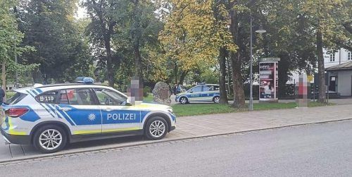 Großeinsatz der Polizei: Nachdem ein Unbekannter mit einem Messer bewaffnet am Salinplatz einen Kiosk ausrauben wollte, blitzte in der Rosenheimer Innenstadt viel Blaulicht. © Foto re