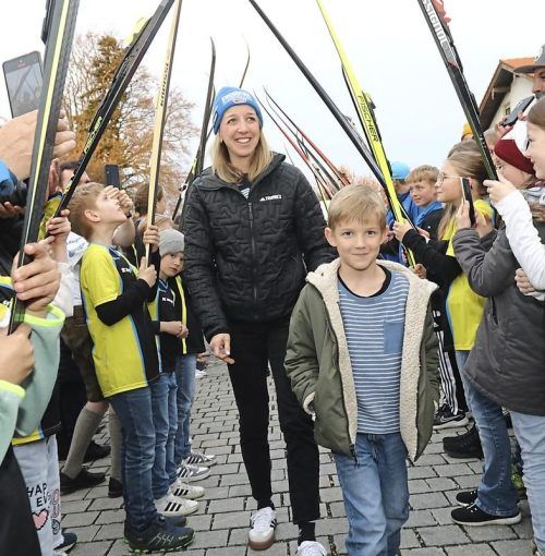 Ein Spalier aus Skistöcken und Skiern, Böllerschüsse, riesiger Jubel: Albaching hat die Siegerin im Biathlon-Gesamtweltcup, Franziska Preuß, gestern Abend mit einem großen Fest empfangen. Auch ihr Heimatverein, der SC Haag, hieß die Athletin willkommen. Sichtlich gerührt nahm Preuß die Glückwünsche