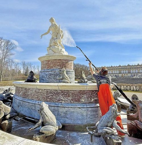 Der Frühling hält Einzug in Herrenchiemsee – und im Sonnenschein erstrahlt nun auch der eindrucksvolle Latona-Brunnen in neuem Glanz. Die Anlage, eine originalgetreue Kopie des berühmten Brunnens in Versailles, zeigt die Göttin Latona mit ihren Kindern Diana und Apollo sowie die mythologische Szene