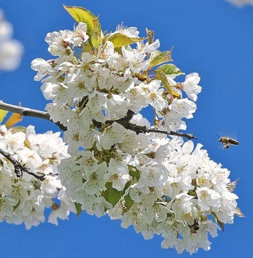Pünktlich zu Ostern blühten im Mangfalltal die Kirschbäume auf und überall begann es bei schönstem Wetter zu blühen und zu grünen – ein Fest nicht nur für die Menschen, sondern auch für die Bienen. Sie brauchen im Frühjahr besonders viel Nektar und Pollen für sich und die Brut. So summte und brummte