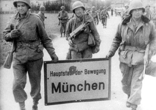 befreiten die Amerikaner, die erst einen Monat zuvor Bayern erreicht hatten, eine kriegszerstörte Stadt vom Nazi-Joch. Eine ihre ersten Trophäen war das Ortsschild der ehemaligen „Hauptstadt der Bewegung“, in der Hitler politisch groß geworden war. Die Schreckensbilanz allein in München: über 6000 L