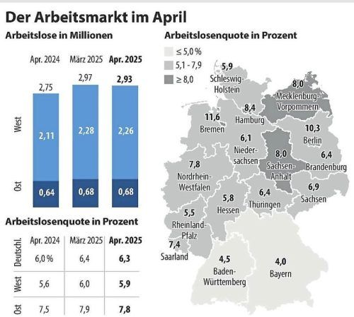 Die Zahl der Arbeitslosen ist im April nur leicht zurückgegangen. Sie sank um 36 000 auf 2,932 Millionen Menschen. Damit fiel die Frühjahrsbelebung eher schwach aus. »WIRTSCHAFT