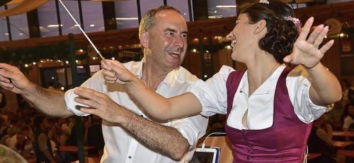 Wiesn und Geburtstag – was gibt es Schöneres! Miss Herbstfest Eva Maria Bachmaier feiert ihren 21. Jubeltag hier ausgelassen in der Auerbräu-Festhalle. Und zur Feier des Tages hat sie sich den an diesem Abend wohl prominentesten Wiesn-Gast auf die Bühne geholt. FW-Chef Hubert Aiwanger, Stellvertrete