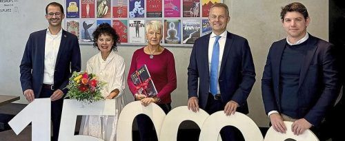 Die Ausstellung „Titanic – Ihre Zeit. Ihr Schicksal. Ihr Mythos“ im Lokschuppen Rosenheim hat den 150 000. Besucher empfangen. Oberbürgermeister Andreas März (von links) begrüßte Helga Plöchinger und Walburga Brunken, zwei Freundinnen aus Olching, als Jubiläumsgäste. Karl Göpfert, Vorstandsvorsitzen