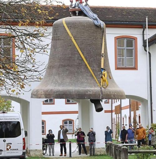 Vor dem Beuerberger Kloster blickten gestern viele Menschen gebannt in die Luft. Eine schwebende Glocke gibt es schließlich nicht alle Tage zu sehen. Ein Kran hievte die bis zu fünf Tonnen schweren Stahlglocken aus dem Kirchturm. Die Glocken im Kloster stehen seit 2023 still, denn sie waren aus dem