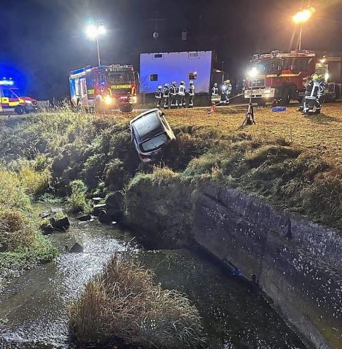 Eine Autofahrt unter Alkoholeinfluss endete in Edling bei Wasserburg beinahe in einem Bach. Am Montagabend gegen 19.30 Uhr fuhr ein 74-jähriger Mann mit seinem Pkw rückwärts aus einer Einfahrt und blieb am Hang stecken. Die Feuerwehr konnte den Absturz in die Ebrach verhindern. Ein Test ergab weit ü