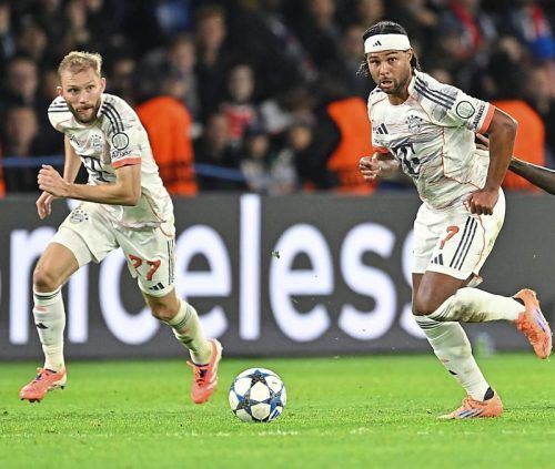 Der FC Bayern um Serge Gnabry und Konrad Laimer haben in der Champions League gegen Paris vor allem defensiv alles reingeworfen. Sehr zur Freude von Bayern-Boss Jan-Christian Dresen, der anschließend vom 2:1-Sieg schwärmte.HUFNAGEL/IMAGO