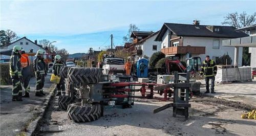 In Bernau hat sich am vergangenen Mittwoch ein spektakulärer Unfall mit einem Gabelstapler ereignet. Gegen 13.30 Uhr verunglückte ein Anwohner beim Rangieren mit dem mit Pflastersteinen beladenen Fahrzeug. Der Gabelstapler kippte um, der Fahrer verlor kurzzeitig das Bewusstsein und wurde vom Rettung