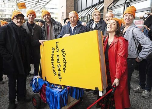 Seit 1956 residierte die Münchner Lach- und Schießgesellschaft an der Schwabinger Ursulastraße. Doch „es sind wilde Zeiten“, so OB Dieter Reiter (Mitte), „und da ist es ein Meilenstein, dass die Lach und Schieß jetzt umzieht“. So geschehen gestern mit Sack, Pack und Schild. Neuer Spielort ist das Fa
