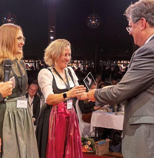Der zweite Platz des Deutschen Tourismuspreises geht nach Staudach-Egerndach: (von links) Bürgermeisterin Martina Gaukler und die Vorsitzende der Achental Tourismus, Elisabeth Keihl, bekamen die Auszeichnung am vergangenen Mittwoch in Saarbrücken überreicht. Prämiert wurden die Schwendaktionen, bei