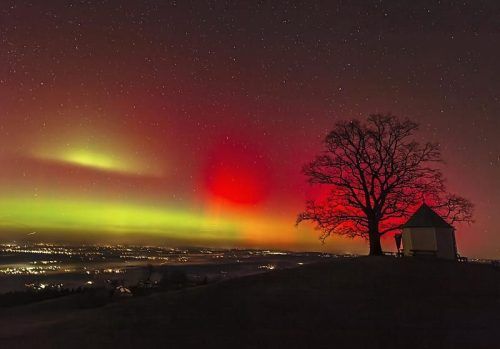 Es gibt Nächte, die man nicht plant – und die man trotzdem nicht vergisst. Am späten Montagabend zeigte sich am Alpenrand ein Polarlicht, das am Samerberg für Staunen sorgte: rötliche Schleier wie glühende Vorhänge, darunter ein breites, grünliches Band über dem Nordhorizont. Für Fotograf Rainer Nit