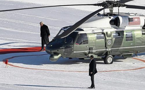 Im Heli nach Davos: Trump lässt keine Zweifel an seinen Grönland-Plänen – ungeachtet dortiger Proteste. © afp/dpa