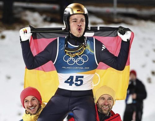 Philipp Raimund hat noch nie ein Weltcup-Springen gewonnen. Ausgerechnet bei den Olympischen Spielen, auf der größten Bühne des Sports, springt der 25-Jährige zur bisher größten Überraschung der Winterspiele in Mailand und Cortina.KARMANN/DPA