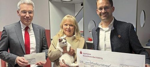 Oberbürgermeister Andreas März (rechts) und Landrat Otto Lederer haben gestern der Vorsitzenden des Tierschutzvereins Rosenheim, Andrea Thomas, eine Soforthilfe zum Erhalt des Tierheims in Höhe von insgesamt 20.000 Euro überreicht. Nach dem Hilferuf des Tierschutzvereins, über den die OVB-Heimatzeit