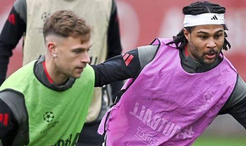 Das Halbfinale fest im Blick haben Joshua Kimmich und Serge Gnabry. Beim gestrigen Abschlusstraining drehte sich alles um das Rückspiel gegen Real Madrid in der Allianz Arena (21 Uhr). Der FC Bayern gewann das Hinspiel in Madrid mit 2:1.HOPPE/DPA