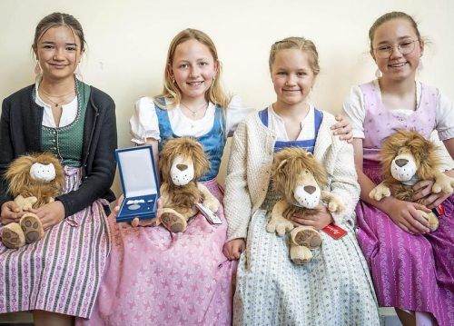 Alle vier Mädchen strahlen, der Star aber ist die elfjährige Verena Stahr (2.v.l.): Sie ist eine von 78 bayerischen Persönlichkeiten, die gestern in der Münchner Residenz mit der bayerischen Rettungs- und der Christophorus-Medaille ausgezeichnet wurden. Verena hatte Leni (2.v.r.., mit ihren Schweste