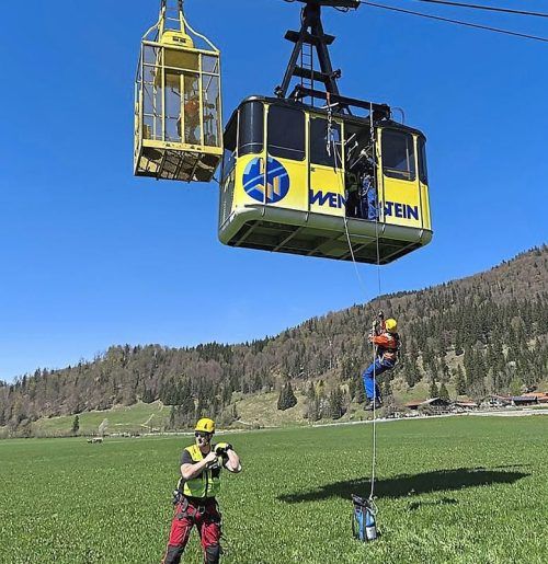 An der Wendelstein-Seilbahn fand eine umfassende Bergeübung statt. Simuliert wurde die Evakuierung eines Rollstuhlfahrers aus einer Seilbahn-Kabine in den Bergewagen. An der Übung beteiligt waren Mitarbeiter der Seilbahn, die Bergwachten Bayrischzell und Brannenburg sowie ein Spezialausrüster für Si