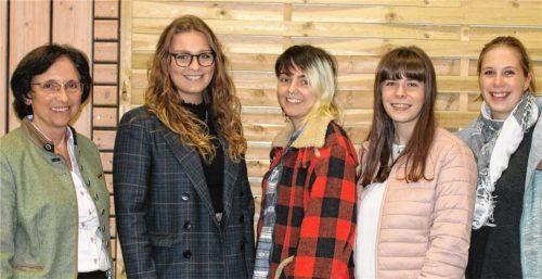 Fünf junge Damen hat Bürgermeisterin Maria Maier (links) in der Bürgerversammlung in Jettenbach für herausragende Schul- und Ausbildungsabschlüsse geehrt. Die Einserabsolventinnen sind (von links): Svenja Dörfel, die die Fachakademie für Sozialpädagogik in Mühldorf mit 1,8 abschloss, Elisabeth Bichl