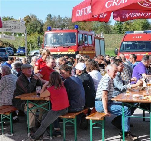 Spätsommerliches Festwetter genossen die Besucher auf dem Trasner Feuerwehrgelände. Denn Petrus war den Floriansjüngern wohlgesonnen und schickte zum „Hallenfest“ warme Sonnenstrahlen, so dass es auch ein „Draußenfest“ wurde. Viele Helfer versorgten die Gäste vom Frühschoppen bis in die Abendstunden