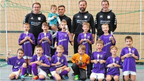 Die Mannschaft des SV Aschau konnte bei der F2-Jugend den Turniersieg feiern, mit auf dem Bild auch die Jugendleitung des SV Aschau, die das zweitägige Turnier organisierte. Foto höpfinger