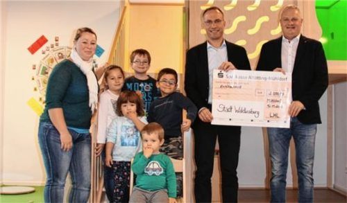 Die Freude in der Kita Kunterbunt war groß, als Manfred Brenner (rechts) von LHL Bürotechnik & Einrichtung einen Scheck über 2000 Euro übergab. Jedes Jahr spendet die Firma zur Weihnachtszeit an eine karitative Einrichtung und verzichtet auf Geschenke für die Kunden. Die neu eröffnete Kita hat die S