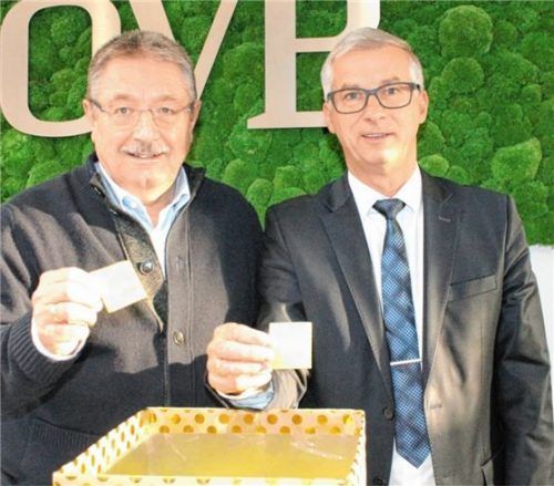 Die nächsten Preise bei der Weihnachtstombola des VfL Waldkraiburg sind gezogen: Einen Barpreis in Höhe von 125 Euro zog gestern Günter Auer (Dental Labor Auer, links) für das Los 010773. Über zwei Karten für ein Bayernspiel darf sich der Besitzer mit der Losnummer 004530 freuen, das Siegfried Siegh