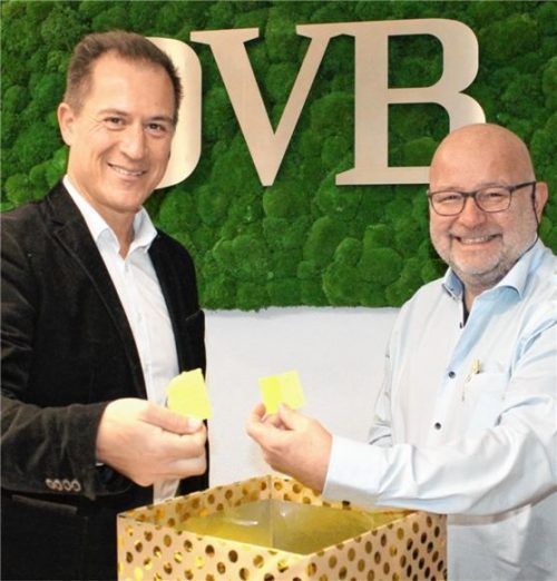 Es geht weiter bei der Weihnachtsverlosung zugunsten der VfL-Jugend. Gestern spielten Peter Rieder (links) von Vermögen AG und Josef Sahlstorfer von Foto Sahlstorfer Glücksfee. Einen Fondsanteil im Wert von 100 Euro gibt es für das Los mit der Nummer 012806, über einen Gutschein im Wert von 100 Euro