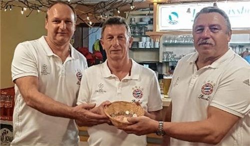 Die Bayernfreunde Kraiburg spendeten den Erlös eines original Bayerntrikots den Jugendfußballern des TV Kraiburg. Über den Betrag von 315 Euro freute sich Jugendleiter Robert Görgner (Mitte) bei der Übergabe durch Vorsitzenden Rudi Kuhn (rechts) und Kassier Ernst Schrödel. Die Gewinnerin des Trikots