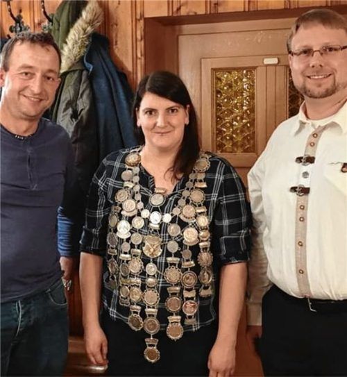 Die Schützenkönigin der Hubertusschützen, Angela Schreiner, die hier in die Mitte genommen wurde von Anton Voglmaier (links) und Daniel Hefter, eröffnet das Schützenkranzl morgen, Freitag, um 20 Uhr im Saal des Gasthauses Schmiedwirt in Ensdorf. Foto fill