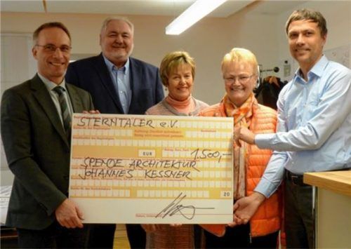 1500 Euro hat das Architekturbüro Kessner in Waldkraiburg dem Verein „Sterntaler“ gespendet, der Kinder, Jugendliche und Familien in Not in Waldkraiburg und im Landkreis unterstützt. „Wir wissen, dass dieses Geld recht sinnvoll und völlig unbürokratisch verwendet wird“, so Architekt Johannes Kessner