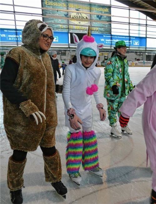 Schon zur Tradition geworden ist der maskierte Publikumslauf, den alljährlich die Stadtwerke mit der Faschingsgesellschaft „Waldburgia“ auf die Beine stellen. Ein buntes Narrenvolk tummelte sich auf der spiegelglatten Fläche im Eisstadion der Raiffeisen-Arena. Einhörner, Pinguin, Polizist, Kuh oder