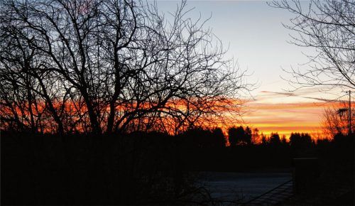 Auch das gibt es in der kalten Jahreszeit: Ein beeindruckender orangeroter Sonnenaufgang war jüngst in der Gemeinde Eiselfing zu beobachten. Bei Temperaturen noch unter null Grad verschwanden Häuser und reifbedeckte Wiesen im Vordergrund angesichts des kräftigen Farbschauspiels und einem faszinieren
