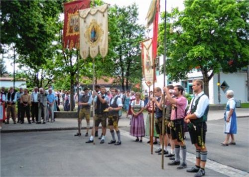 Bei herrlichem Sommerwetter fand am Fronleichnamstag in Amerang die traditionelle Prozession statt. Angeführt vom Kreuz und den Vereinsfahnen setzte sich nach dem Gottesdienst der festliche Zug, begleitet von den kirchlichen Fahnen in Bewegung. Mit Gesängen und Gebeten ging es durch die Straßen und