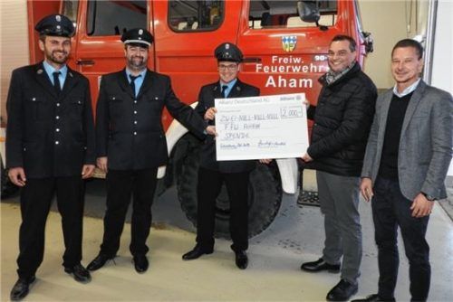 2000 Euro überreichte Michael Heidrich von der Allianz Generalvertretung in Wasserburg an die Feuerwehr Aham (Gemeinde Eiselfing). Die Spende wird für den Ausbau des neu angeschafften Löschfahrzeugs LF8/6 verwendet. „Nur gut ausgerüstete Einsatzkräfte können effektive Hilfe gewährleisten. Wir sind d