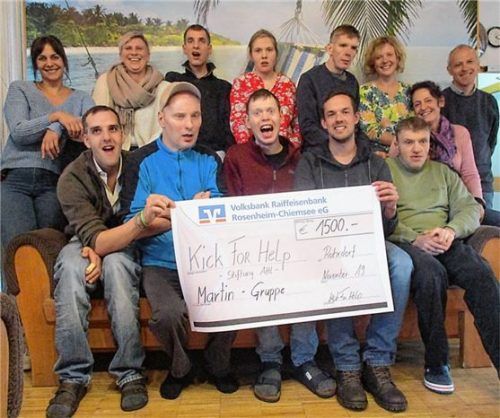 Erneut spendeten die Rohrdorfer Fußballer mit ihrer Aktion „Kick for Help“ an die Wohngruppe Martin der Stiftung Attl 1500 Euro. Die Martingruppe ist eine Intensivwohngruppe, in der acht junge Erwachsene mit einer geistigen Behinderung leben. Nur zwei von ihnen schaffen es, regelmäßig einer Arbeit i