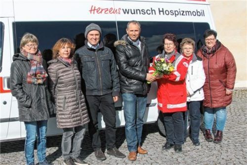500 Euro übergab die Pfarrkirchenstiftung Mariä Himmelfahrt Haag an das Hospizmobil des Bayerischen Roten Kreuzes (BRK). Das Geld stammt aus dem Erlös der Pfarrfeste. Das Hospizmobil will Menschen in lebensbedrohlichen oder palliativen Situationen Herzenswünsche erfüllen. Bei der Spendenübergabe (vo