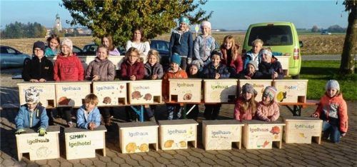 Grünthaler Kinder fertigen behagliche Igelhäuser
