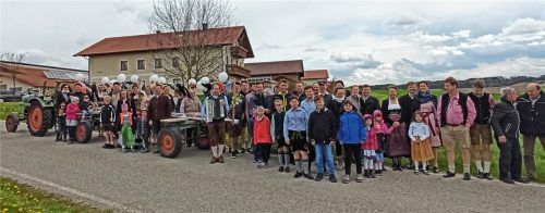 Einen Weisertwecken von fünf Metern Länge fuhren die Mitglieder der Allmannsauer Feuerwehr zu ihrem Vorsitzenden Hans Kneißl. Jung und Alt vereinten sich hinter dem Akkordeon von Alfons Wendl, der später durch die Rechtmehringer Blechblasmusik Verstärkung erhielt. Der Besuch galt dem neugeborenen To