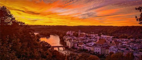 Was für ein Anblick, genossen von der Schönen Aussicht aus. Wasserburgs Altstadt unter einem feuerroten Abendhimmel. Da brennt das Herz des Fotografen vor Leidenschaft für dieses Traummotiv. Die Stadt bietet zu jeder Jahreszeit schöne Anblicke. Jetzt, im Herbst, zeigt sich der Himmel oft besonders s