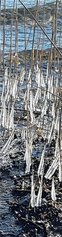 Ein ungewöhnlicher Anblick findet sich derzeit an so manchem See in der Region: Wie kleine gläserne Spitzenhüte hat sich das Eis um die Stiele der Ufergräser gelegt. Unser Fotograf Hans Fritz fand diese Stillleben der Natur bei einem Spaziergang. Foto Fritz
