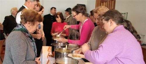 Vier verschiedene Suppen haben die weiblichen Mitglieder des Griesstätter Pfarrgemeinderates für das Fastensuppenessen am dritten Fastensonntag vorbereitet. Die dafür gegebenen Spenden, so der Geistliche in seiner Begrüßung, werden für den geplanten barrierefreien Zugang vom Parkplatz östlich der Kl