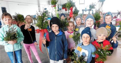 Ganz im Zeichen der Osterzeit und der Osterbräuche stand das Treffen der „Schubkarr´nschiaber“ des Schnaitseer Gartenbauvereins in der Halle der Firma Huber in Rumering. 18 Kinder kamen, um sich einen Palmbesen zu binden. Dazu stand am Halleneingang Material zur Verfügung. Die Kinder banden dies mit