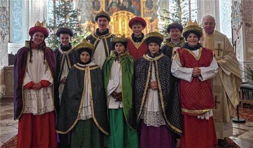Die Auer Ministranten sammelten als Sternsinger stolze 1.679,90 Euro für die Aktion „Schule statt Fabrik – Sternsingen gegen Kinderarbeit“. Das Foto zeigt die Sternsinger mit Pater Alois Stautner bei der Aussendung. Foto wierer
