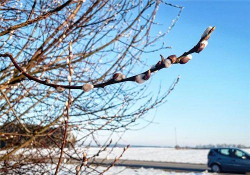 Seit Wochen nachts immer wieder Frost, Zentimeter dickes Eis und gefrorener Schnee, dabei kommen keine Frühlingsgefühle auf. In Brand bei Maitenbeth aber lassen sich die Weidenkätzchen von der Kälte nicht beirren und legen schon einmal los, sie sind eine bedeutende Nahrungsquelle für Käfer, Raupen,