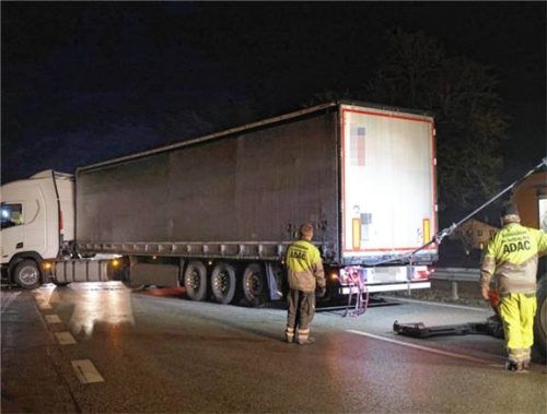Festgefahrener Lkw blockiert B12