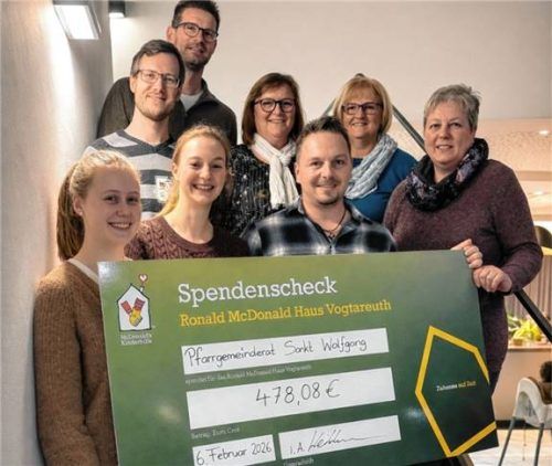 Vor Kurzem überbrachte der Pfarrgemeinderat aus St. Wolfgang symbolisch an das Ronald-McDonald-Haus einen Scheck über 478 Euro. Die Spenden kamen durch den Ausschank von Glühwein an Weihnachten zusammen. Als Dank gab es eine interessante Führung durch die Einrichtung. Die Mitglieder des Pfarrgemeind