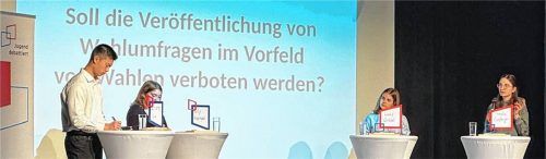„Soll die Veröffentlichung von Wahlumfragen im Vorfeld von Wahlen verboten werden?“ So lautete das Finalthema des Regionalwettbewerbs „Jugend debattiert“ in Rosenheim. Amelie Gaißinger aus der 11. Jahrgangsstufe des Luitpold-Gymnasiums qualifizierte sich bei dem Wettbewerb, an dem Schulen aus dem ge
