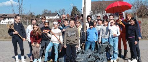 Zusammen mit ihrer Klassleiterin Martina Holderied-Demmel rückte die Klasse 4b, unterstützt von fünf Damen des Obst- und Gartenbauvereins Reitmehring unter der Leitung von Marietta Trottmann, in Reitmehring aus. Vom Bauhof ausgerüstet mit Zangen und Müllsäcken durchkämmten die Schüler eifrig den Ort