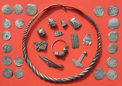 Schaprode – In einem Acker auf der Ostseeinsel Rügen sind der Hobbyarchäologe René Schön und Schüler Luca Malaschnitschenko (13) auf einen wertvollen Silberschatz aus dem späten 10. Jahrhundert und damit aus der Umbruchsphase von der Wikingerzeit zum Christentum gestoßen. Auf einer Fläche von etwa 4