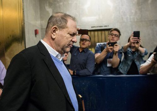 New York – Dunkles Jackett, weißes Hemd, blauer Pullover, mehrere Bücher unter dem Arm und blass im Gesicht: So erscheint Harvey Weinstein am Freitagmorgen um kurz nach sieben Uhr (Ortszeit) vor einer Wache der New Yorker Polizei im Süden Manhattans. Dutzend